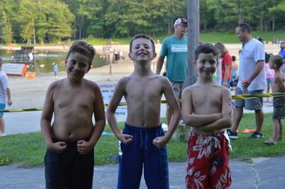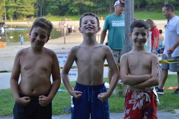 Parents and guardians may collect their child's race numbers and swim caps between 3:00-5:15pm on Friday, July 11 at the Grafton Lakes State Park Beach Tent to the left side of the beach.
